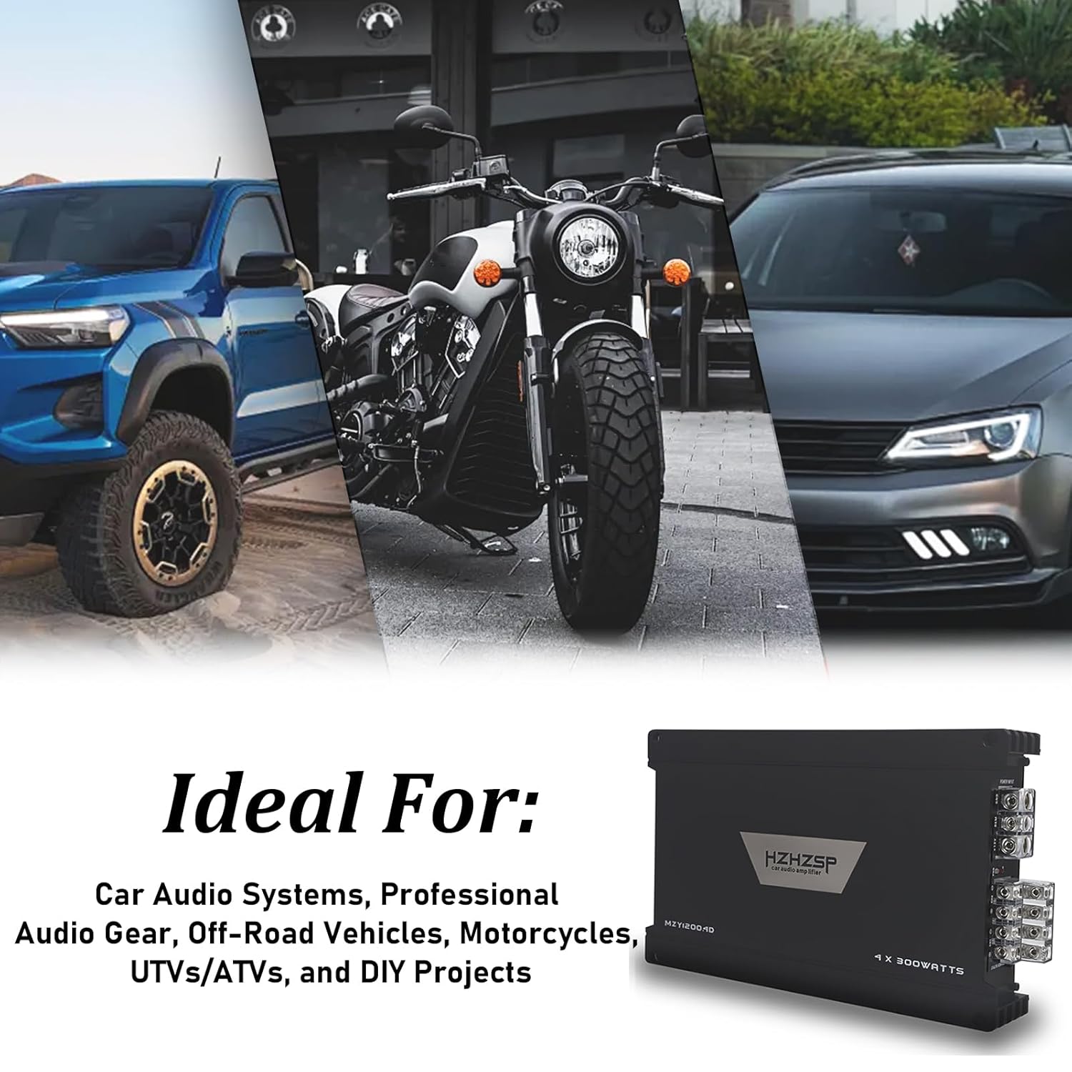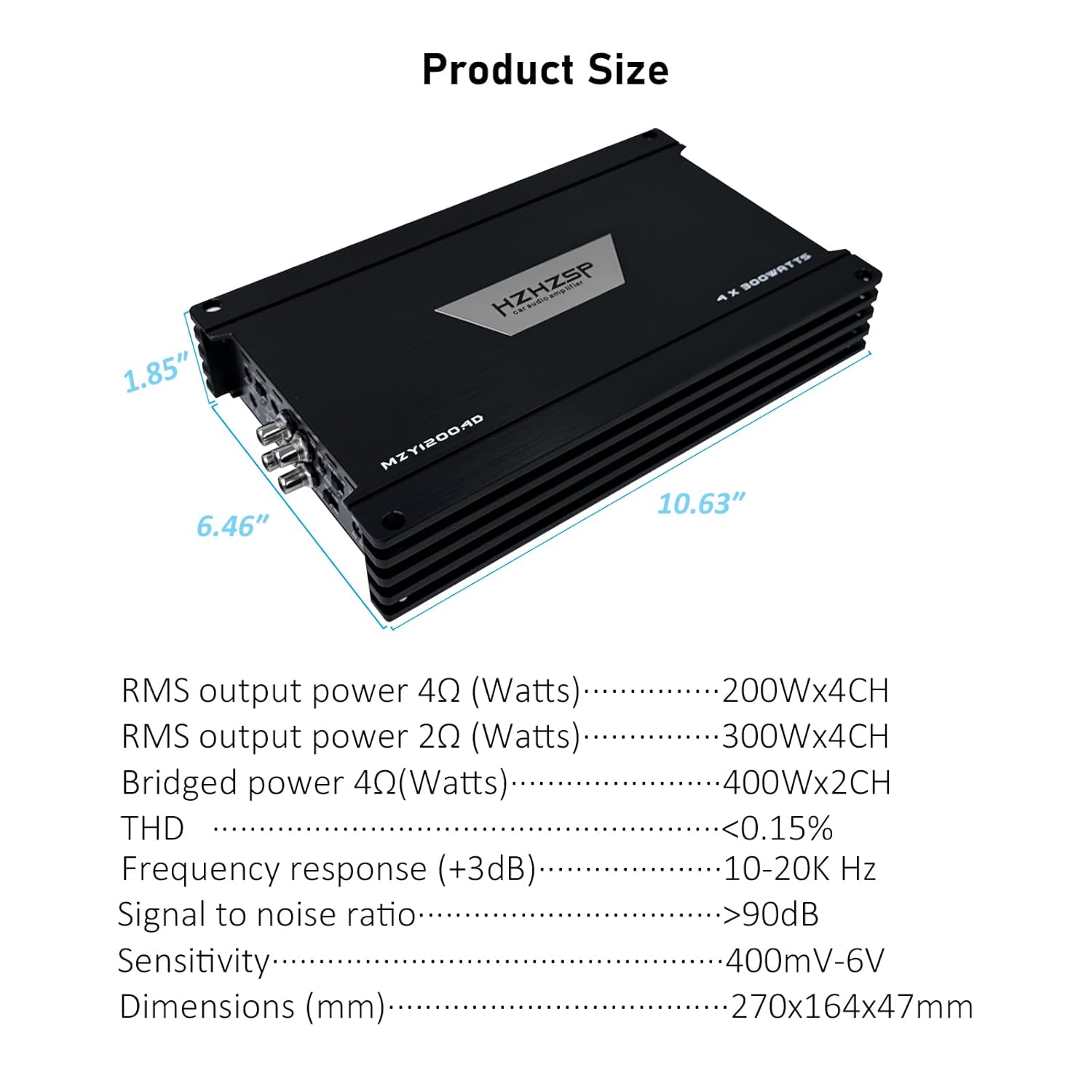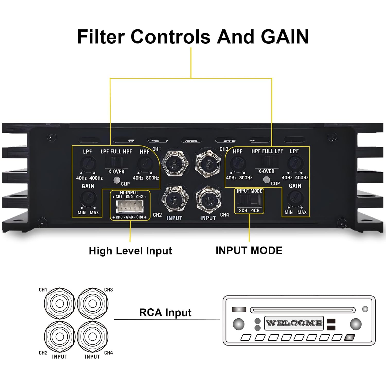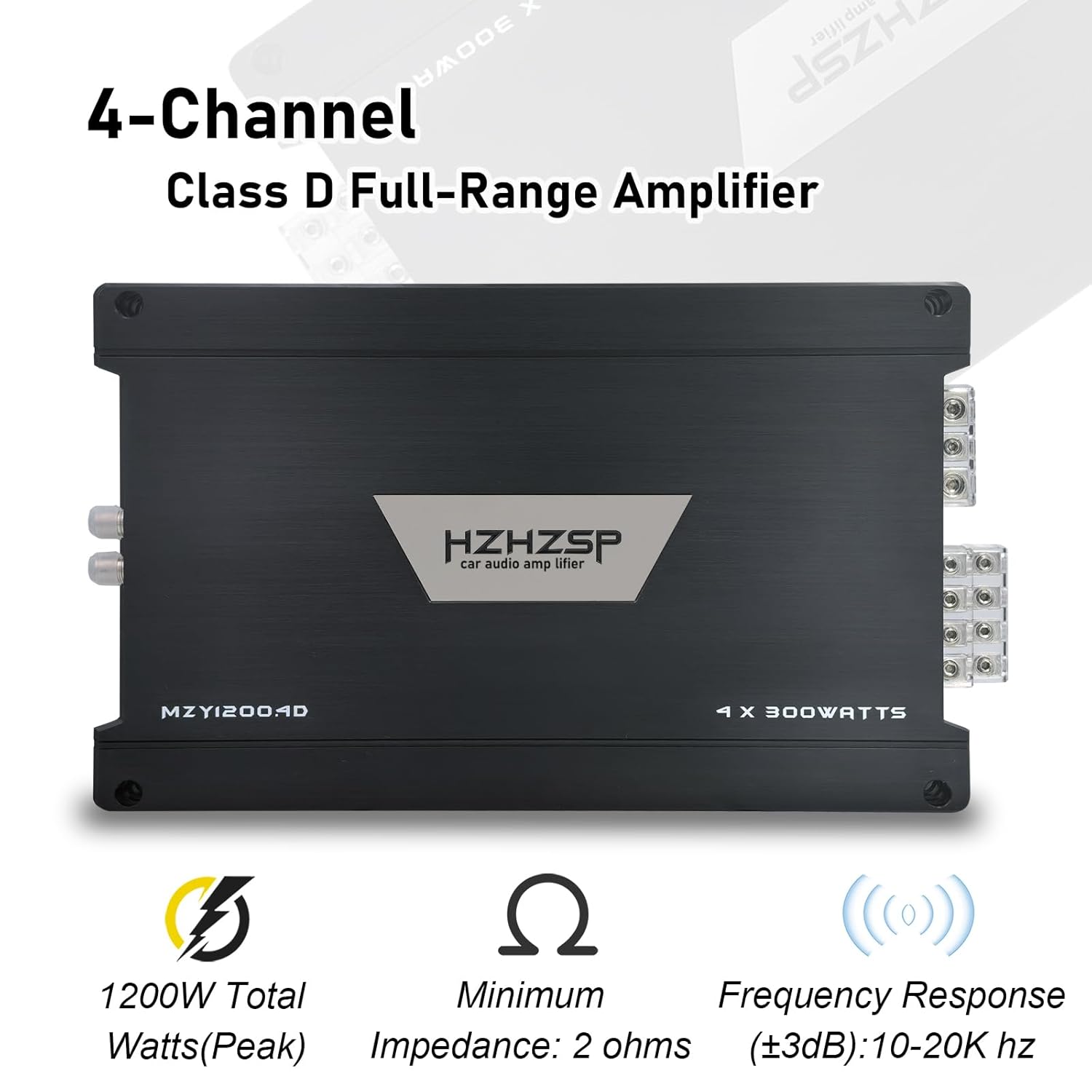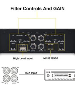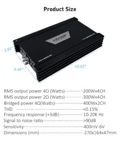 1200W 4 Channel Car Amplifier Class D – Adjustable Crossover, Bridgeable 400W x 2 @ 4 Ohm, Compact Aluminum Design with RCA and High Level Inputs