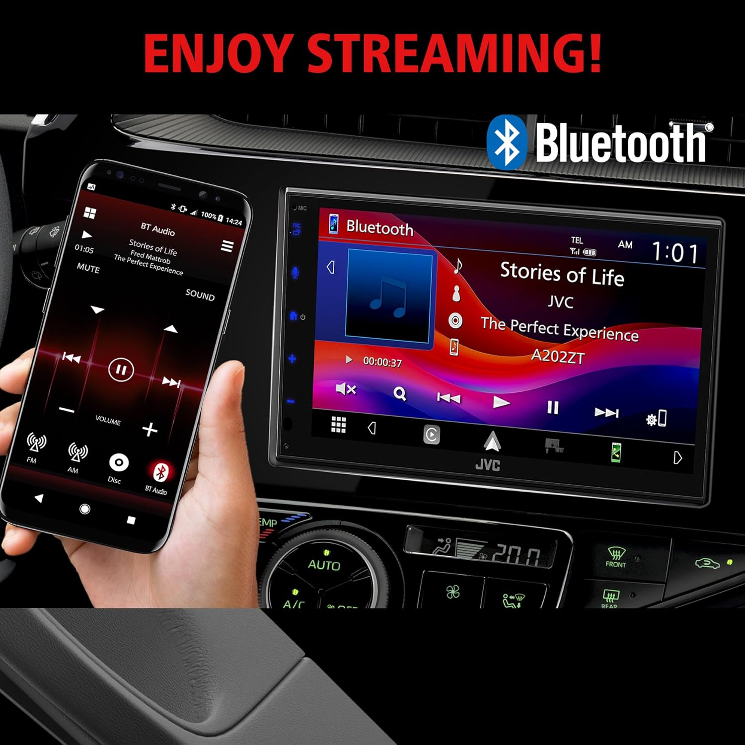 Got a smartphone? It's your ultimate road companion, packed with all the essentials, right? Well, check out JVC's KW-M595BT digital multimedia receiver! It's like having all the good stuff right at your fingertips on a capacitive 6.8" touchscreen display. With Android Auto and Apple CarPlay, you can stay connected and in control. Jam to your favorite tunes from multiple sources, make hands-free calls, and fine-tune your sound like a pro.